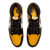 No bloqueio de cores clássico, o Air Jordan 1 High OG Taxi é construído com uma parte superior de couro preto liso com camadas perfuradas e toques de Taxi Yellow na tira cruzada, emblema da língua em tecido felpudo e sobreposição no calcanhar.