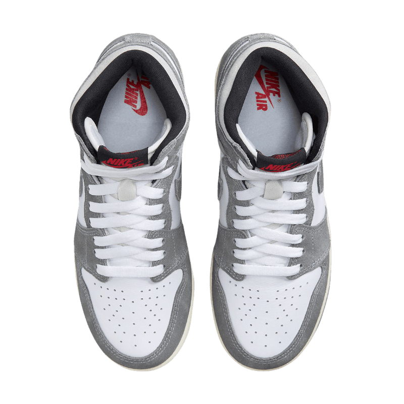 O Jordan 1 Retro High OG Washed Black é construído com couro branco e parte superior Washed Black. Notas de cinza são colocadas ao redor da gola, enquanto a entressola em cor vela ajuda a dar ao tênis um design envelhecido.
