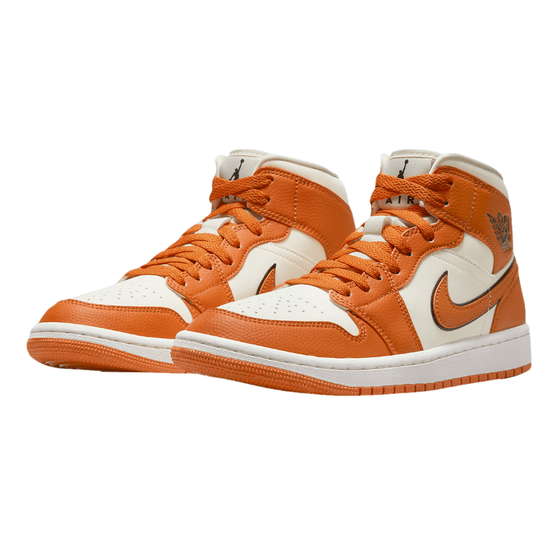 Esse Air Jordan 1 Mid Sport Spice apresenta uma base de couro liso creme com sobreposições de couro texturizado laranja.