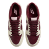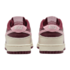 Esse Dunk tem muitos detalhes, material de couro creme e em tons de vinho, uma camada de swoosh em rosa.